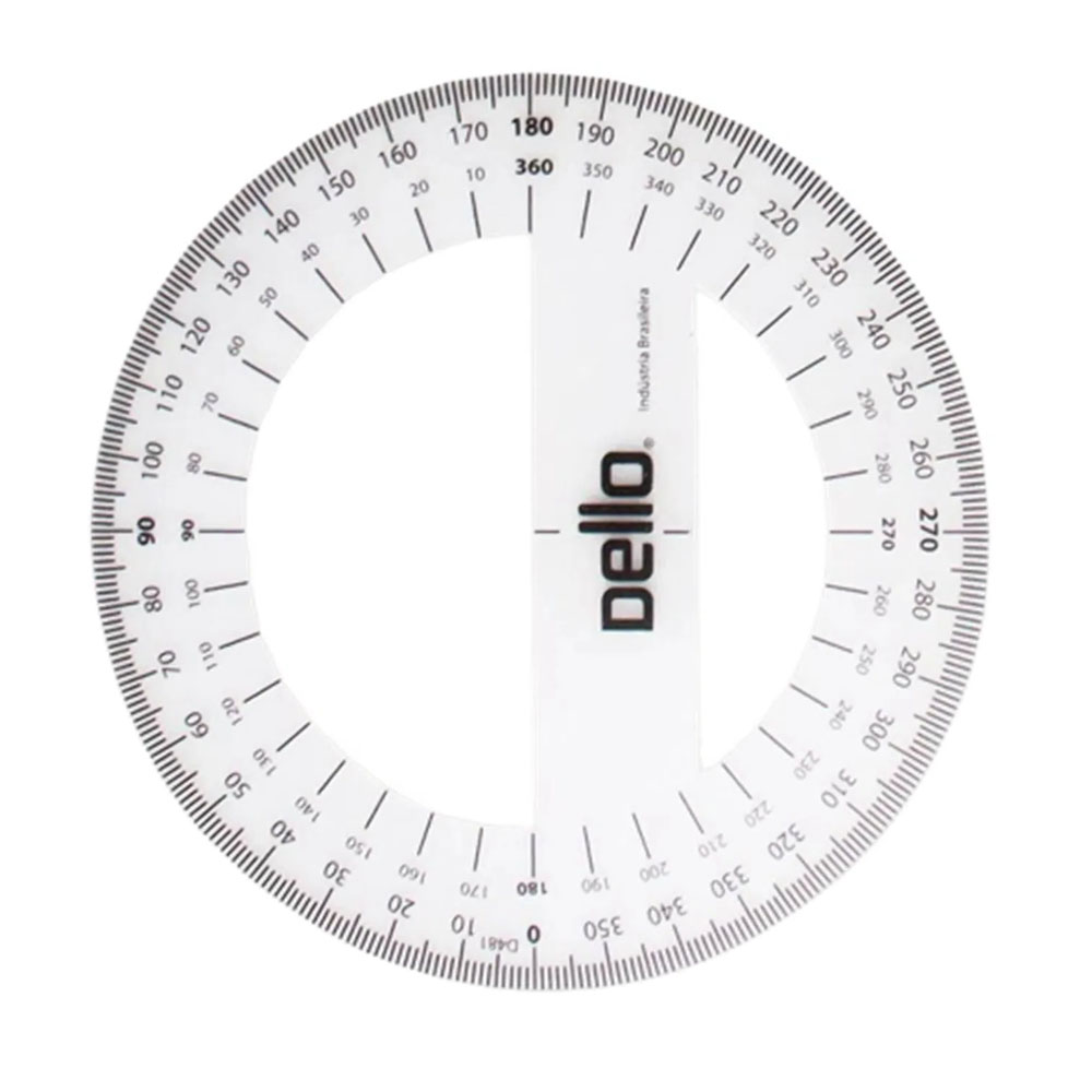O Transferidor Dello possui ângulo de até 360º, é feito em Polipropileno e por ser flexível, sendo impossível de quebrar, ele é essencial para as aulas de educação artística, geometria e trigonometria.