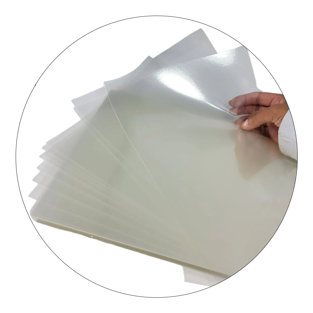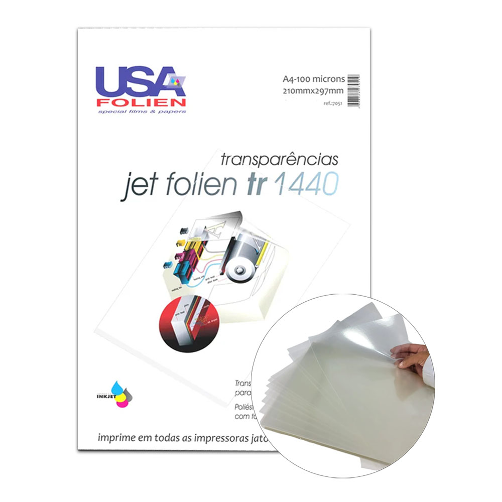 Transparências fabricadas com filme de poliéster ultra-clear, 50, 75 ou 100 mícrons, tratado para manter alta estabilidade dimensional necessária, e quimicamente para manter alta fixação de tintas, corantes, toner, cera térmica e tintas corantes de canetas a base de álcool. Devem ser utilizadas de acordo com o método e/ou equipamento de impressão utilizado para a produção de transparências. Para cada utilização existe uma transparência indicada. Respeite a indicação, evitando risco de perda do produto e eventual dano ao equipamento de impressão.