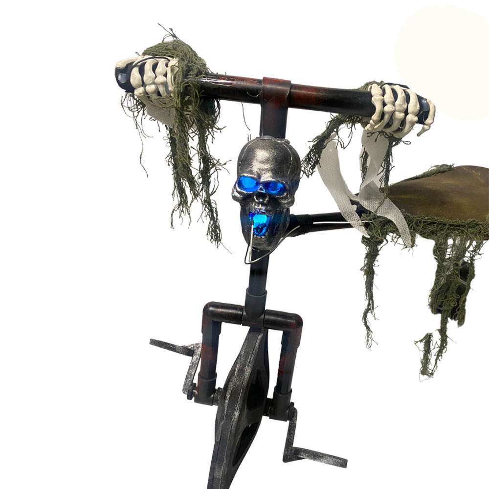 Triciclo Caveira Com Movimento Som Luz Halloween 75cm