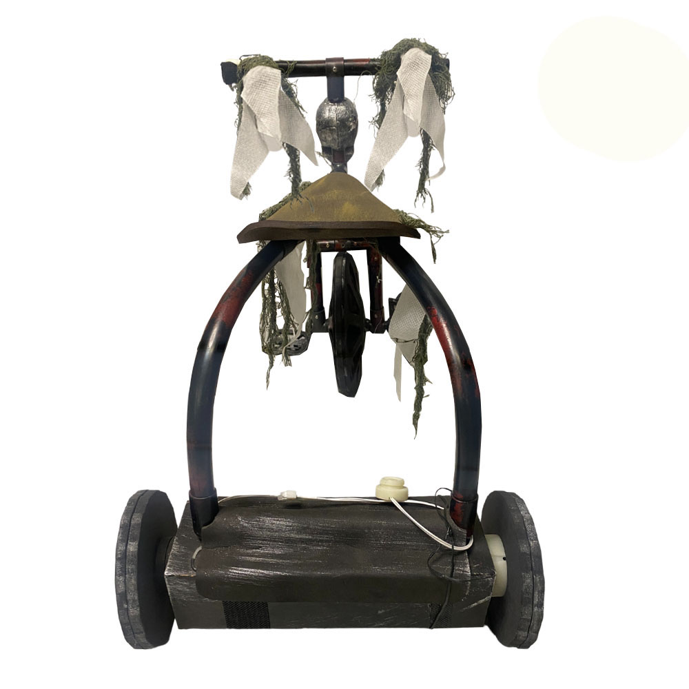– O triciclo se movimenta para frente e para trás emitindo sons e luzes horripilantes;