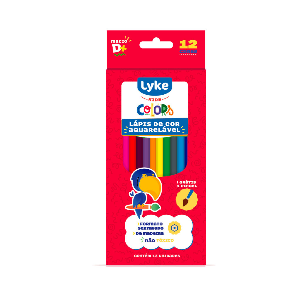 O lápis de cor aquarelável LYKE, com 12 cores intensas e corpo de madeira é ideal para ser utilizado em atividades escolares e projetos artísticos. Acompanha pincel.