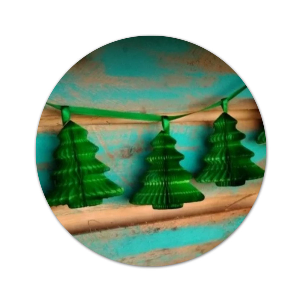 Enfeite Varal com 5 Mini Árvore de Natal em Papel Colméia