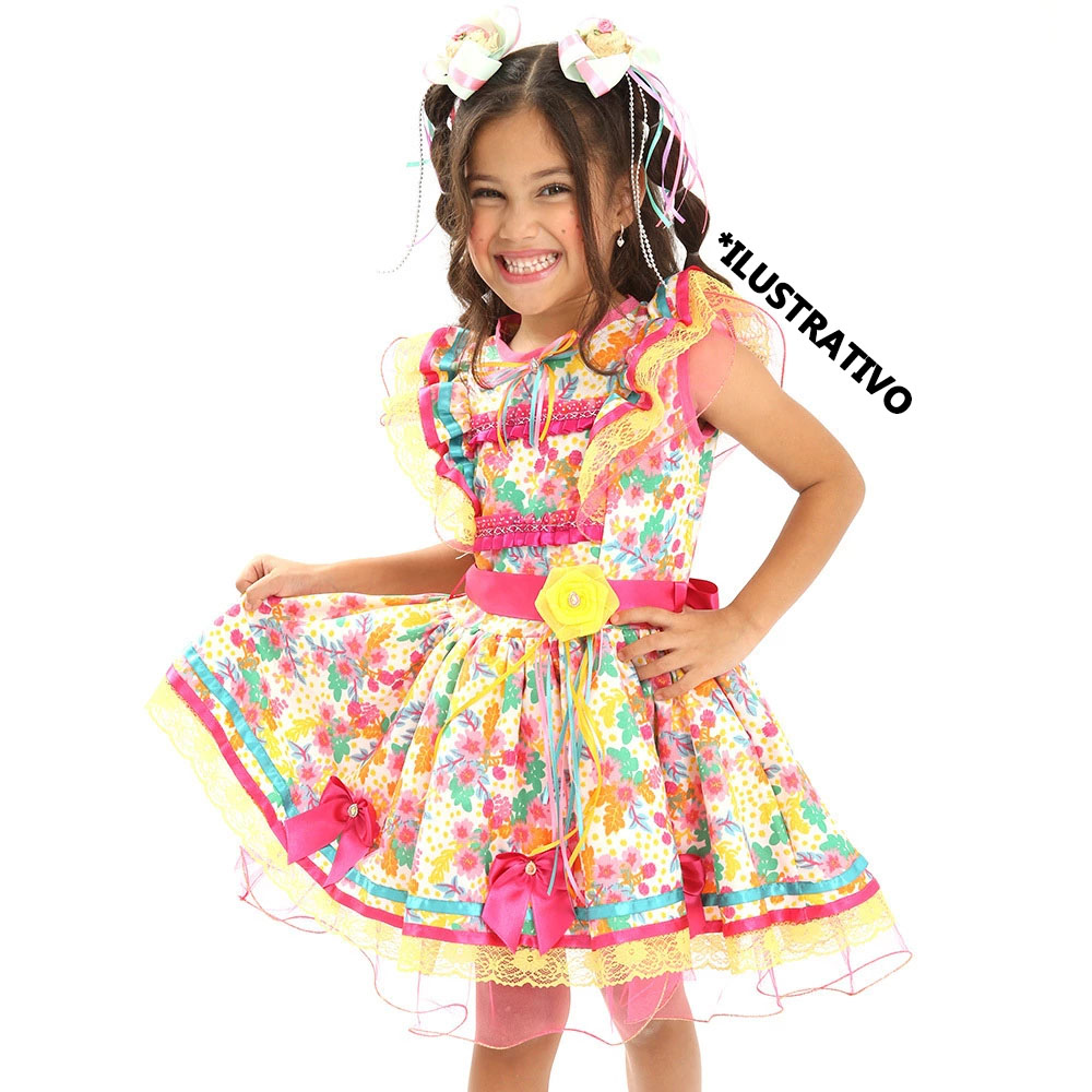 Vestido Festa Junina Infantil de Luxo, decorado com babados, laços e fitas